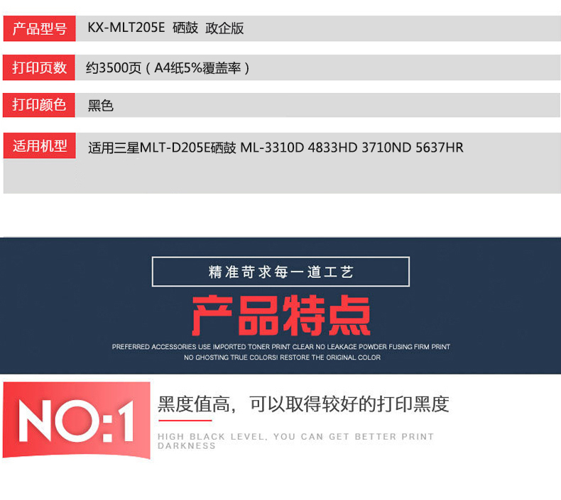 凱欣KX-MLT205E 適用三星 MLT-D205E 硒鼓 ML-3310D 4833HD 3710ND 5637HR 全國統(tǒng)一價(jià):226元