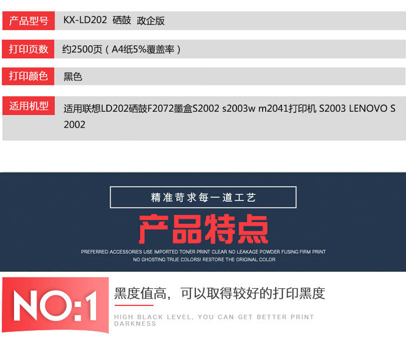 凱欣KX-LD202 適用聯(lián)想LD202硒鼓F2072墨盒S2002 s2003w m2041打印機(jī) S2003 LENOVO S 2002 粉盒激光打印機(jī) 全國統(tǒng)一價:198元