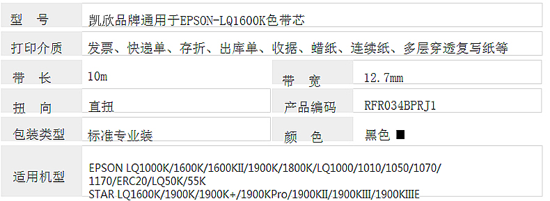 凱欣 KX-LQ1600KIIIH 適用愛普生EPSON LQ1600K3H 2680k 2090 FX2190 全國(guó)統(tǒng)一價(jià):72元/6個(gè)