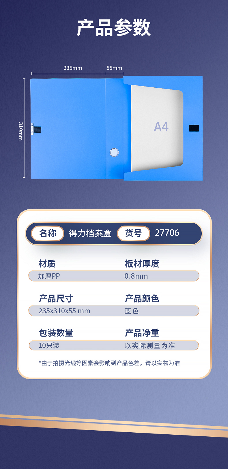 得力 檔案盒55mm 27706 全國(guó)統(tǒng)一價(jià):85元