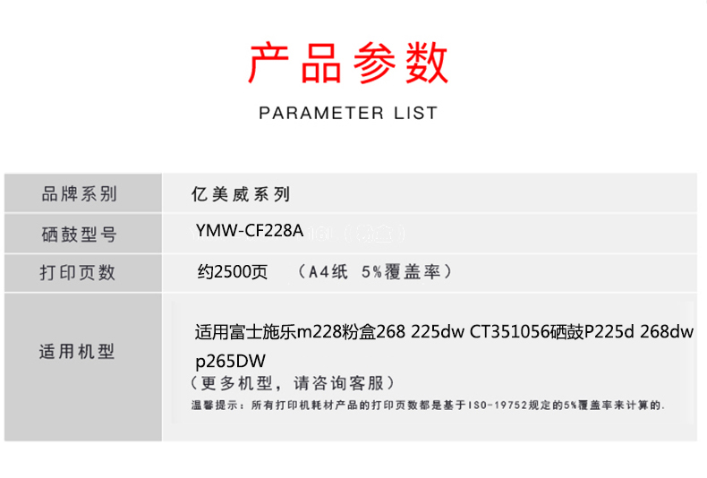 億美威 YMW-CF228A 惠普 M403D /427DW/M1120/M1522 全國(guó)統(tǒng)一價(jià):178元